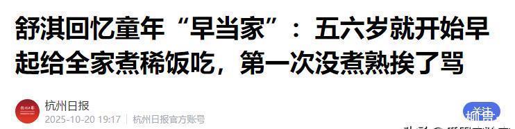 杭州日报——舒淇回忆童年“早当家”:五六岁就开始早起给全家煮稀饭吃,第一次没煮熟挨了骂——2025年10月20日
